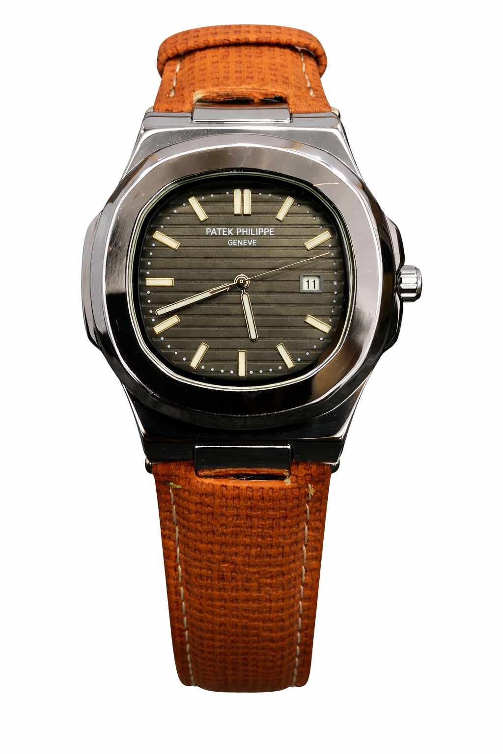 This sophisticated watch draws inspiration from the iconic Patek Philippe Nautilus design, combining classic craftsmanship with contemporary styling.